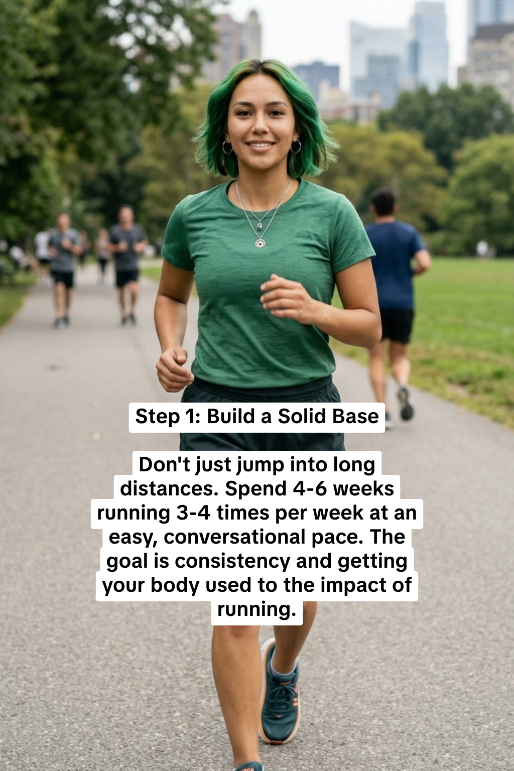 Don't just jump into long distances. Spend 4-6 weeks running 3-4 times per week at an easy, conversational pace. The goal is consistency and getting your body used to the impact of running.